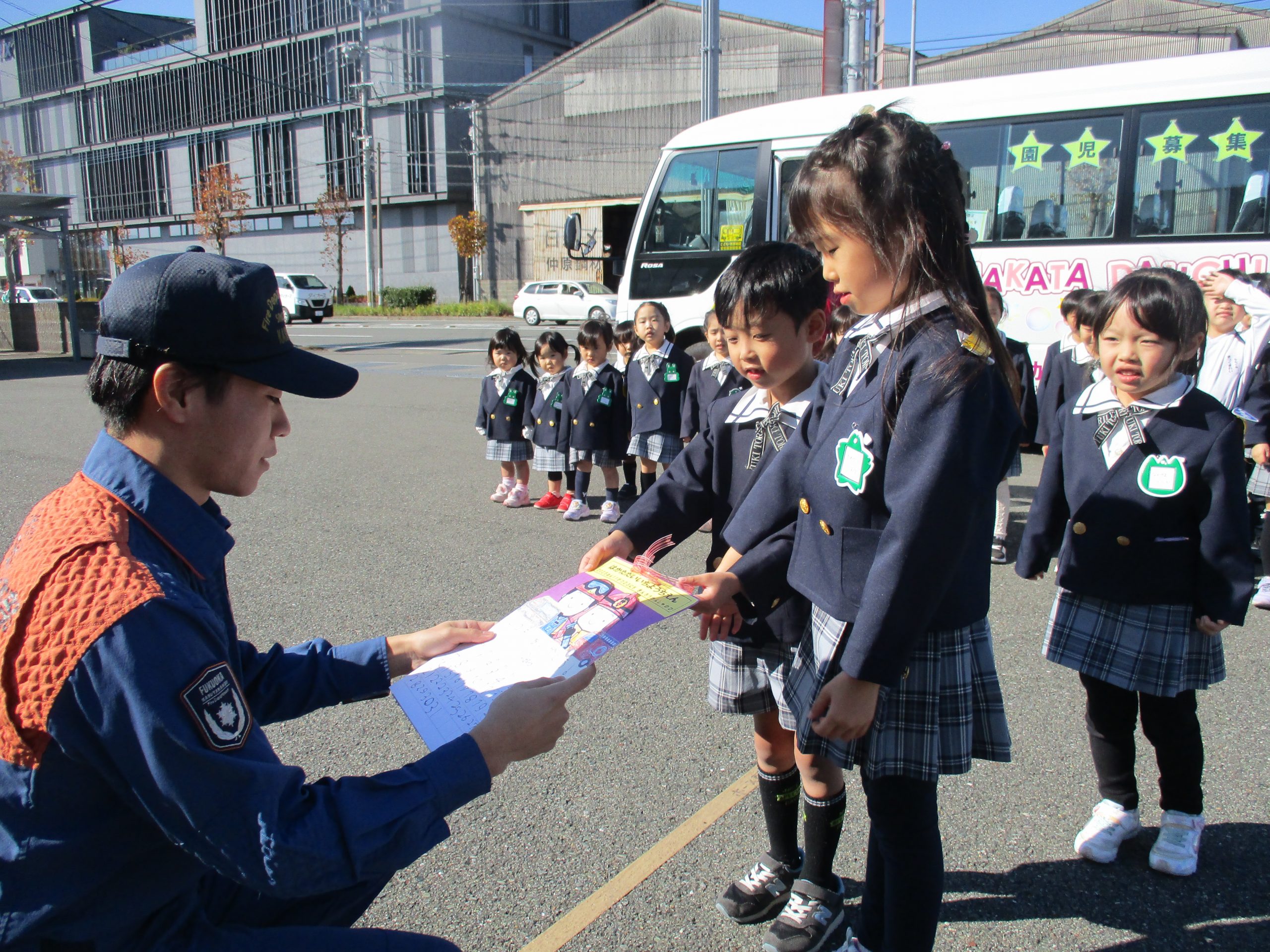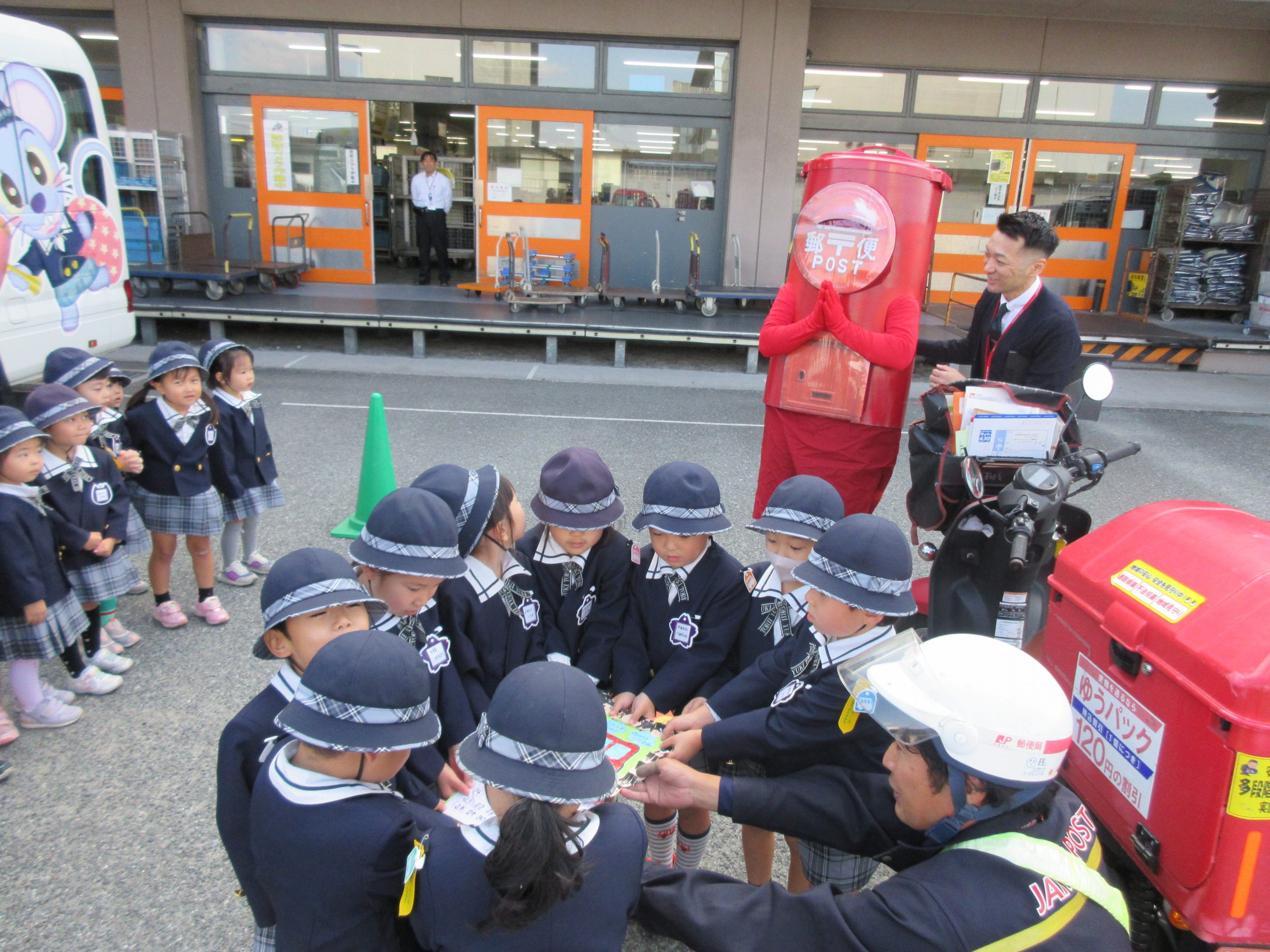 11月23日は『勤労感謝の日』いつもお仕事を頑張っている人達へ、各クラスで作ったオリジナルのカレンダーを、感謝の言葉と共に届けに行ってきました。消防署や警察署、志免町役場や郵便局などをはじめ、毎日お世話になっている地域の方やバスの先生、給食のママミールさんやサポーターさんに「いつもありがとうございます!」と、目を見てしっかり感謝を伝えた子ども達。実際に働いている所を見学させてもらったり、お仕事の内容を教えてもらったり、地域を清掃したりすることで、働く人たちの存在が私たちの生活を支えていることを学ぶ機会になりました。帰りの会に今日の出来事を振り返っていると、子ども達から「帰ったらありがとうって言わなきゃ!」と、毎日1番近くで支えている家族に感謝の気持ちを伝えることに気付いた子ども達の姿が見られました。これからも色々な事にチャレンジしていきながら周りの方々に感謝の気持ちを持ちながら過ごしてきたいと思います。